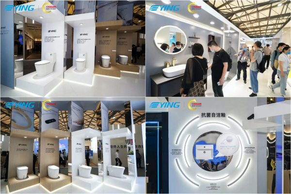 秉承smart living慧生活“clean洁净 care关爱 share分享”全新升级的品牌内涵,鹰卫浴顺应市场需求,深挖用户痛点研发,契合年轻消费群体的审美取向和功能需要,推出体验式健康智能卫浴新品及新技术:双擎智旋Pro专利技术、抗菌自洁釉、智能坐便器、风尚多元化体验式卫浴套间、轻奢风浴室柜、绚丽多彩PVD面盆龙头、雅士黑岩板淋浴柱及全新工程产品,经典力作与新品cp齐聚一堂,阵势非凡,吸引众多观展人员上前体验并了解。