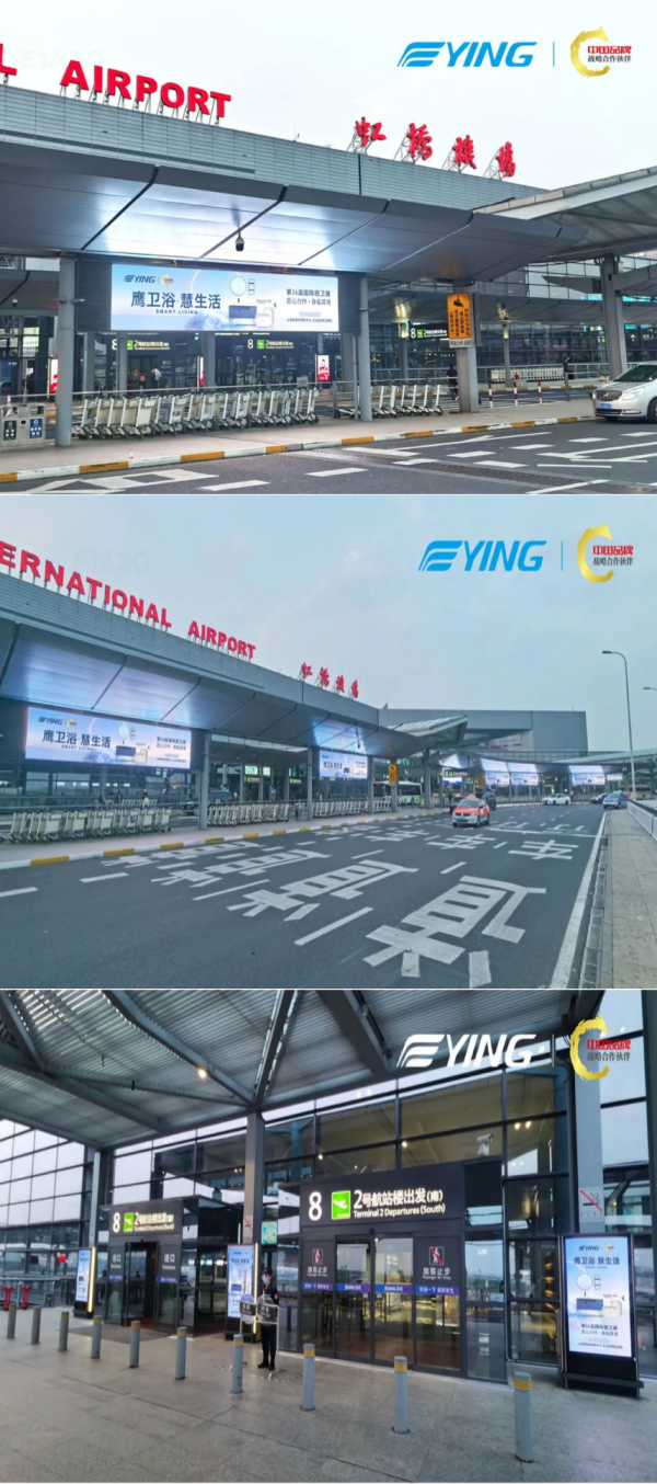 在2021KBC展会期间,鹰卫浴品牌传播攻势再掀高潮,机场与上海新国际博览中心的品牌宣传形成呼应之势,借助机场的强大传播影响力,开启机场“霸屏”模式,在上海虹桥机场等多个机场等旅客通道、登机口等重要区域投放品牌广告,让数以亿计的行业内外乘客共同体验鹰卫浴的品牌实力。