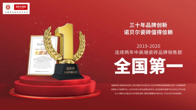 重磅消息!2021年3月,诺贝尔瓷砖荣获世界权威调查机构欧睿“2019-2020连续两年中高端瓷砖品牌销售额全国第一” 的声明。在瓷砖行业深耕近三十年的诺贝尔,再次以专业产品力突围瓷砖市场,从数个国内外瓷砖品牌中脱颖而出。