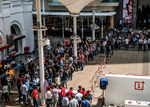 2018年外国消费者排队购买一加手机