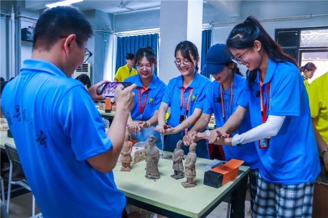 “当你站在秦始皇陵兵马俑坑前感受秦朝军团的磅礴气势时,可曾想到眼前的庞大军阵也曾破损残缺?”伴随着老师的倾情解说,营员们化身“文物修复师”,在老师们专业的指导下,大家亲手清理俑片,细心粘贴,手边的毛刷、竹签等各式工具像一把把“手术刀”,屏气凝神间每一道工序都凝聚着自己的心血。拼对、粘接、补全......当一只只陶俑在大家的手中逐渐成形,一股成就感与自豪感油然而生。这不仅是一次技能的学习,更是一次文化的传承与致敬。