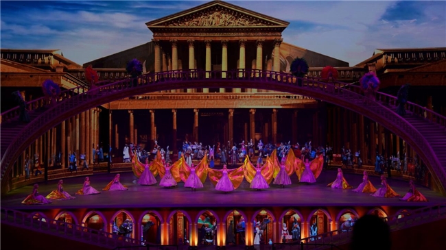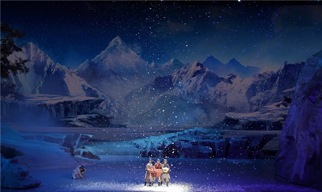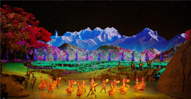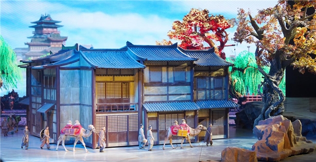 晚上,营员一行来到《驼铃传奇》剧场,观看古丝绸之路上的奇幻故事。舞台上送君千里、祥雨洗尘、异国风情、文化交融......驼工们终于踏平驼道满载而归,故乡不再是黄粱一梦,丝绸之路上遥远的驼铃声和琳琅满目的货物也展现出盛唐的强大和璀璨。