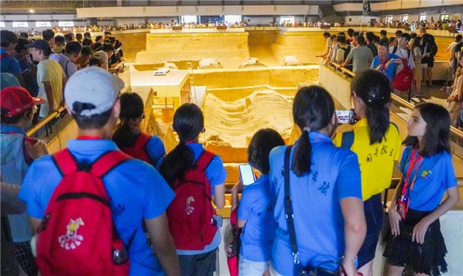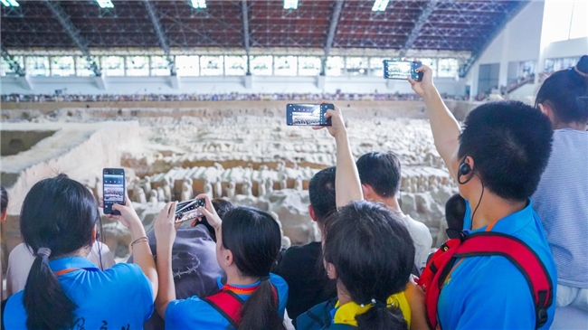 作为2024“中国寻根之旅”夏令营陕西营的营员们投票率最高的夏令营目的地——秦始皇帝陵,它以历史悠久、规模庞大、千人千面而闻名世界。夏令营第五日,营员们乘坐大巴前往秦始皇帝陵博物院,用一天的时间探寻世界八大奇迹之秦兵马俑。